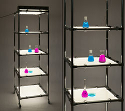 Светостеллаж предназначен для культивирования фототрофных микроорганизмов в любых прозрачных емкостях (колбах, чашках, культуральных матрасах и пр.) в стационарных условиях либо на шейкерах и (или) ротаторах. Наличие пяти полок позволяет размещать больше емкостей с культурами или растений, повышая эффективность использования площади культуральных помещений. Каждая из полок представляет собой светоиспускающую акриловую панель. Основное преимущество данной модели — равномерное рассеянное освещение культур, что положительно сказывается на росте микроорганизмов и растений. Источниками света служат белые светодиоды с гладким спектром, обеспечивающим эффективный фотосинтез. Регулировать яркость освещения возможно как изменением яркости, собственно, светодиодных ламп, так и независимой регулировкой по высоте каждой из пяти полок. Таким образом, на разных полках одного стеллажа можно с одинаковой эффективностью выращивать культуры как в низких чашках Петри, так и в высоких колбах Эрленмейра. Данная модель светостеллажа оптимальна как для поддержания коллекций фототрофных микроорганимзов, так и для опытов с микроводорослями, цианобактериями и высшими растениями.